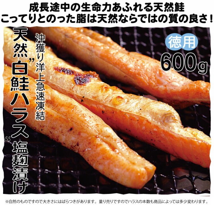 - 【冷凍便】沖獲り《白鮭》ハラス 600g 塩麹漬け 白鮭はらす部分 加熱用