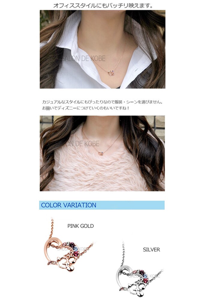 - 24金加工 ホワイトゴールド【スワロフスキー ハート ネックレス】ディズニー ミニー レディース