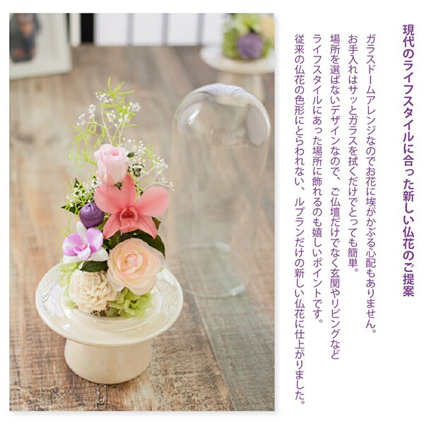 プリザーブドフラワー 『花音』 ガラスドーム 仏花 お供え お悔み 供養 仏壇花 プリザードフラワー | プリザーブドフラワー 仏花 ガラスドーム お供え お悔み