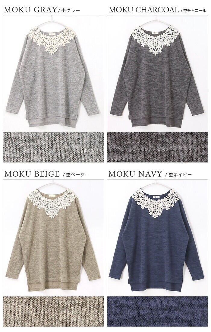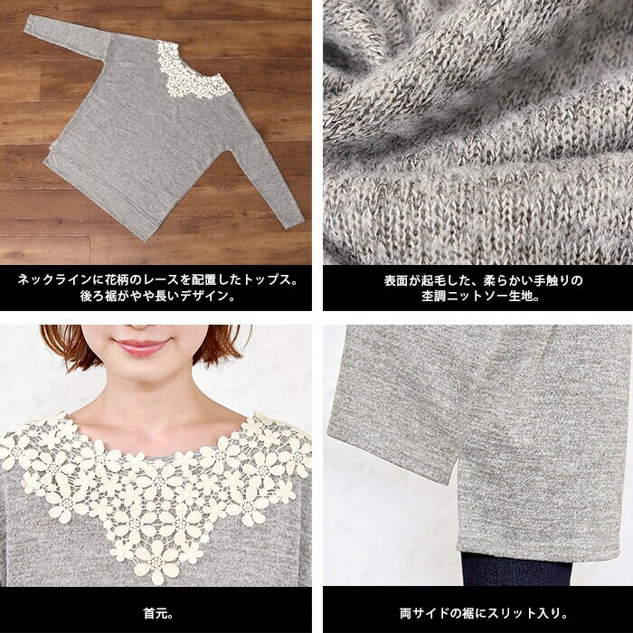- 花のレースで華やかにニットソー胸元レース プルオーバー