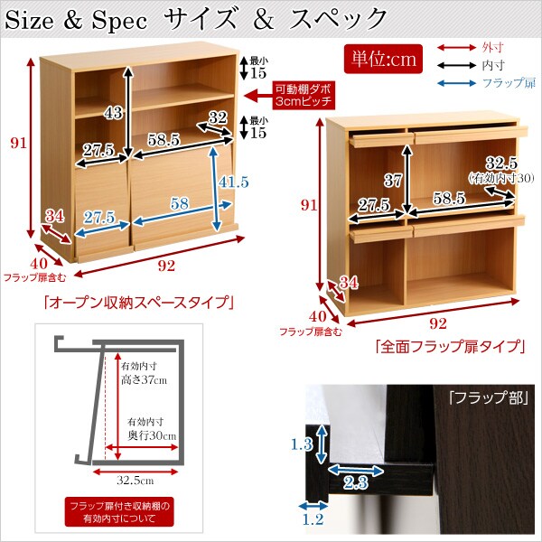 外寸:幅 92cm×奥行 40cm×高さ 91cm(1個あたり) (フラップなしタイプ)