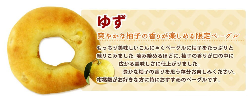 【1個入】こんにゃくベーグル(ゆず) | こんにゃく40%以上配合!外はカリカリ、中はモッチリ♪美味しくカロリーオフ