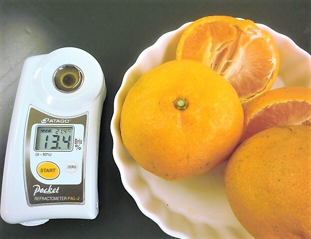 温州ミカンより少し大きめで、糖度は高く(平均13度以上)、