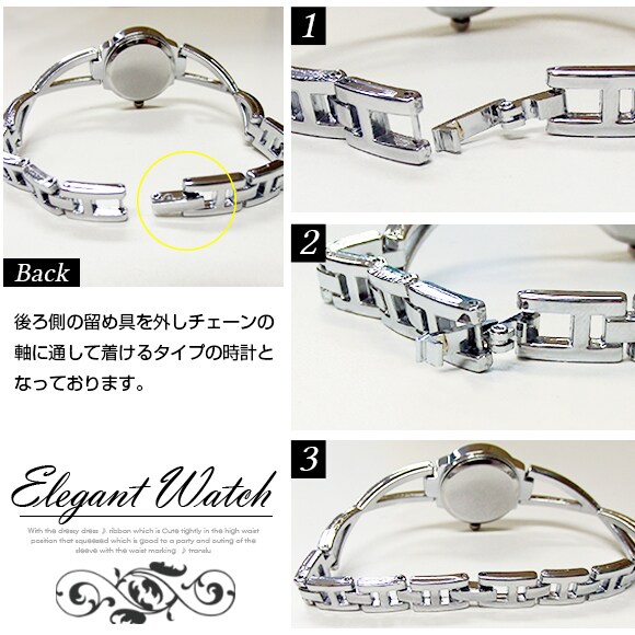 シンプルで小さめの文字盤とブレスタイプのバングルで、女性らしく高級感のある時計になっています♪