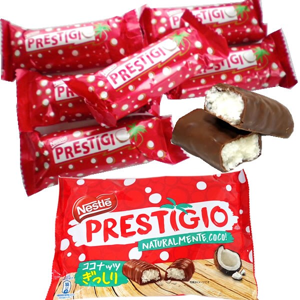 ココナツがぎっしりです。ブラジルの太陽をいっぱいに浴びたココナッツをチョコレートで包んだNESTLE PRESTIGIOはブラジルでポピュラーなチョコバー。