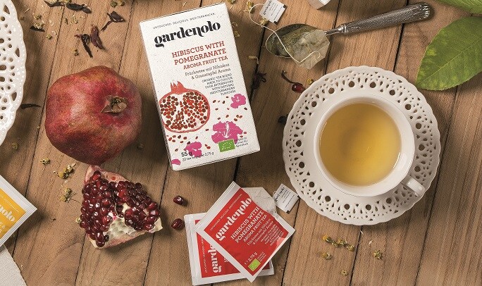 ハイビスカスとザクロの風味が調和した地中海生まれのオーガニックハーブティー。