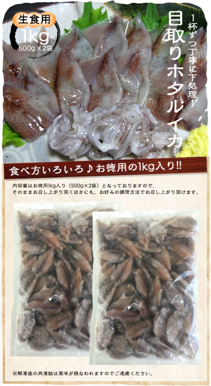【1kg】生食用国産ホタルイカ ホタルイカ 目取り | 日本海で獲れた目取り済みで口当たりの良いほたるいかたっぷり1キロ
