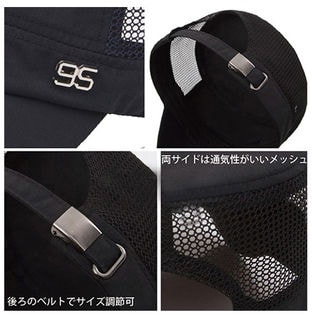 - 【ブラック】速乾性・通気性抜群! メッシュ ワークキャップ 男女兼用 サイズ調整可