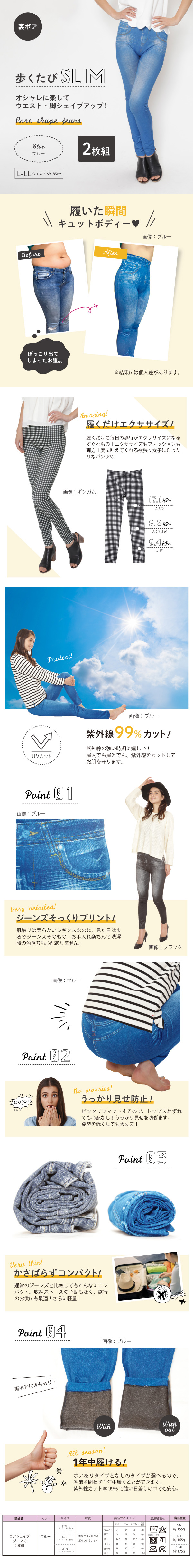 2枚組 裏ボアタイプ【L-LL/ブルー2枚】コアシェイプデニムプリントレギンス | 楽して美脚&お腹シェイプアップ!さらに裏ボアでポカポカ♪