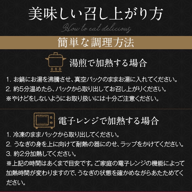 ・原材料/材質/素材:うなぎ(愛知県三河一色産)、醤油、還元水飴、砂糖(和三盆糖)、味醂、水飴、澱粉、国産ウナギエキス、酵母エキス(原材料の一部に小麦を含む)