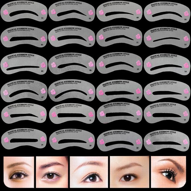 - 24種類 眉毛テンプレート24枚セット 太眉対応 24パターン 眉毛を気分で使い分け 眉用ステンシル