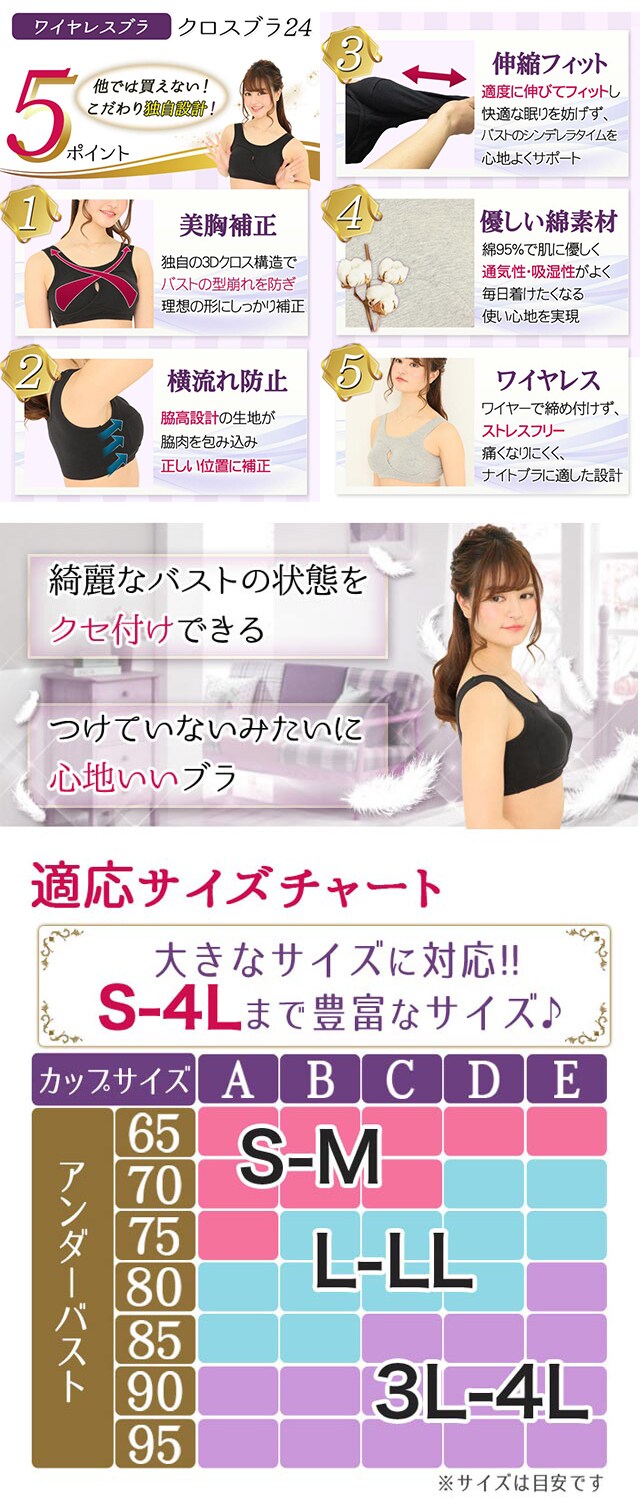 【グレー/3L-4L】クロスブラ24/ x1Fa9/クロス構造が美胸に導く | 着けるだけ美胸メイクブラ。型崩れ、横流れ、下垂に悩む方必見!