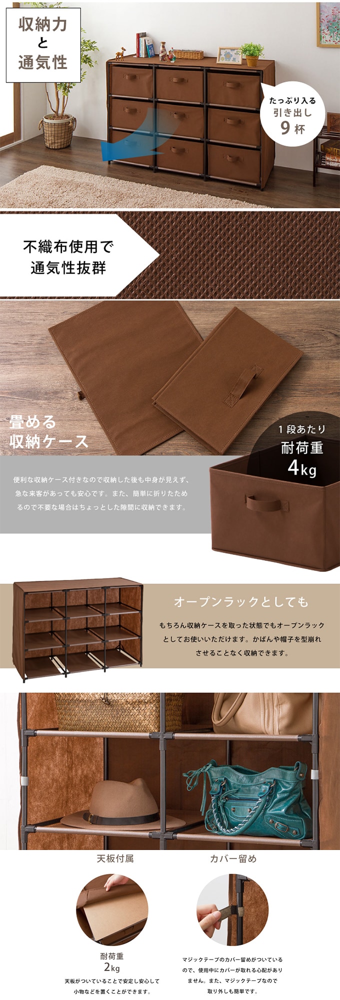 大容量衣類収納チェスト ロータイプ 9杯 3段3列 幅112cm | 不織布使用で通気性抜群。すっきり片付く大量収納。