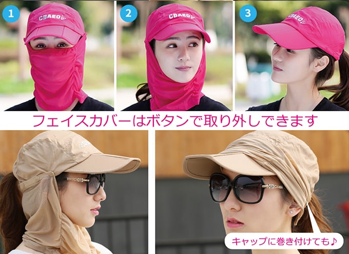 紫外線予防の必需品!首まで隠れるフェイスカバー付き☆通気性抜群の素材で息苦しさも軽減!!