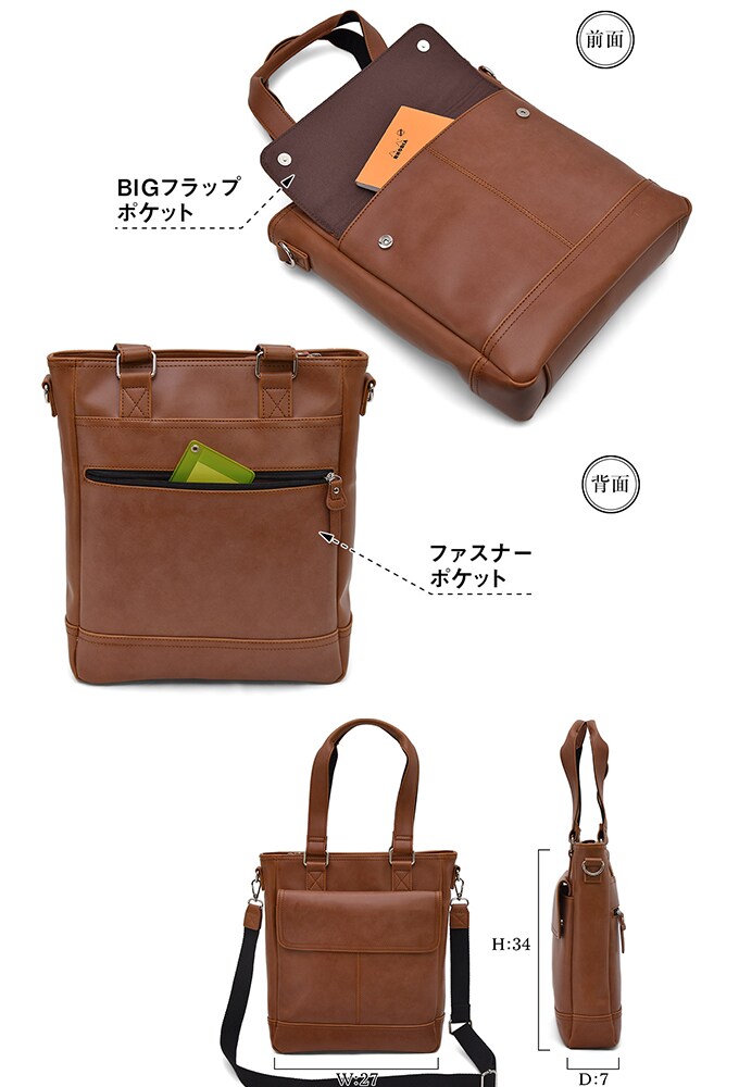 ブランド TRICKSTER【メンズ ファスナー 2WAY トートバッグ】通学 ショルダーバッグ | マットな質感とスマートなフォルム。縦長の2WAYトートバッグ。