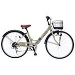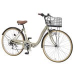 - 【サンドベージュ】折畳シティサイクル26インチ・6段ギア・オ...