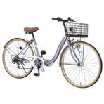 - 【ラベンダーパール】折畳シティサイクル26インチ・6段ギア・...