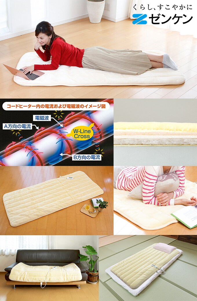 ゼンケン 電磁波カット 1人用電熱マット/ZMT-75C 厚さ4cmのふかふかマット | 優しい肌ざわりで快適なくつろぎ時間を!スイッチ入れればじんわり暖かくなり快適温度を保つ。