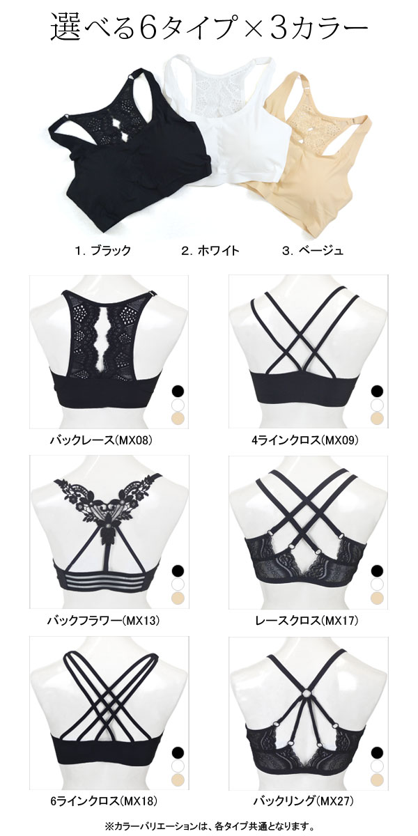バックデザイン背中魅せカップ付きノンワイヤーブラトップ クロス レース | セクシーなバックデザインのカップ付きブラトップ♪