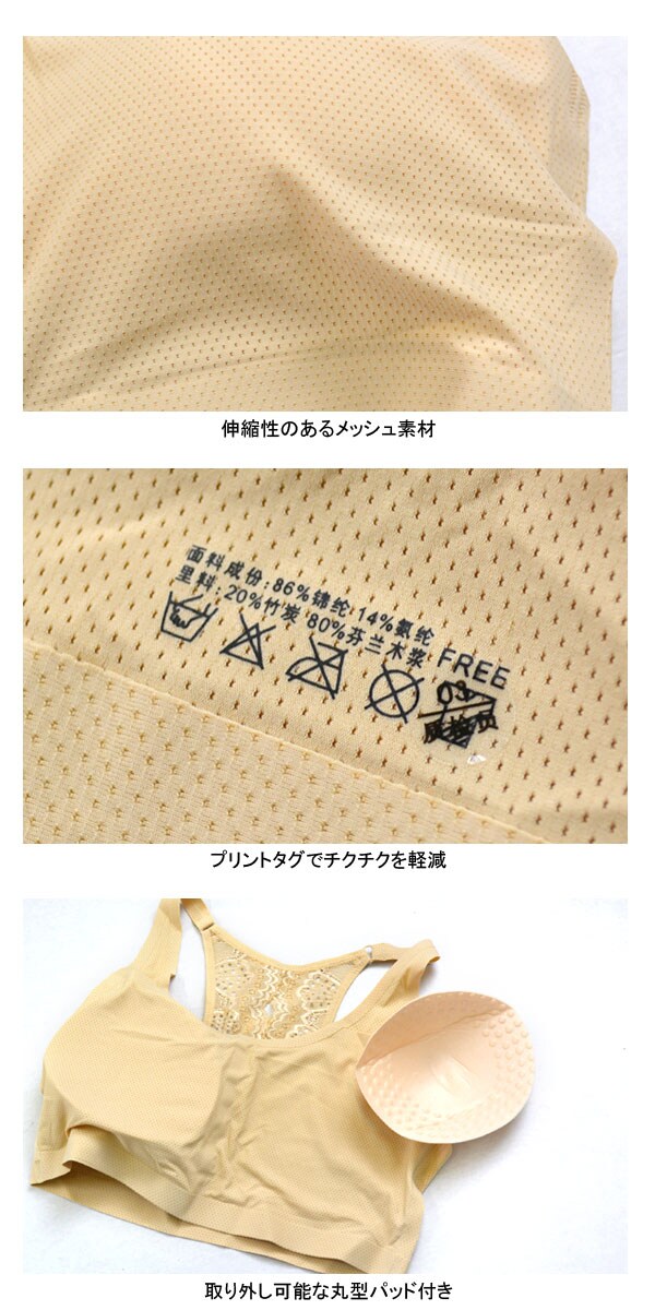 メッシュ素材で伸縮性もばっちり☆ノンワイヤーなので着心地も楽ちん!