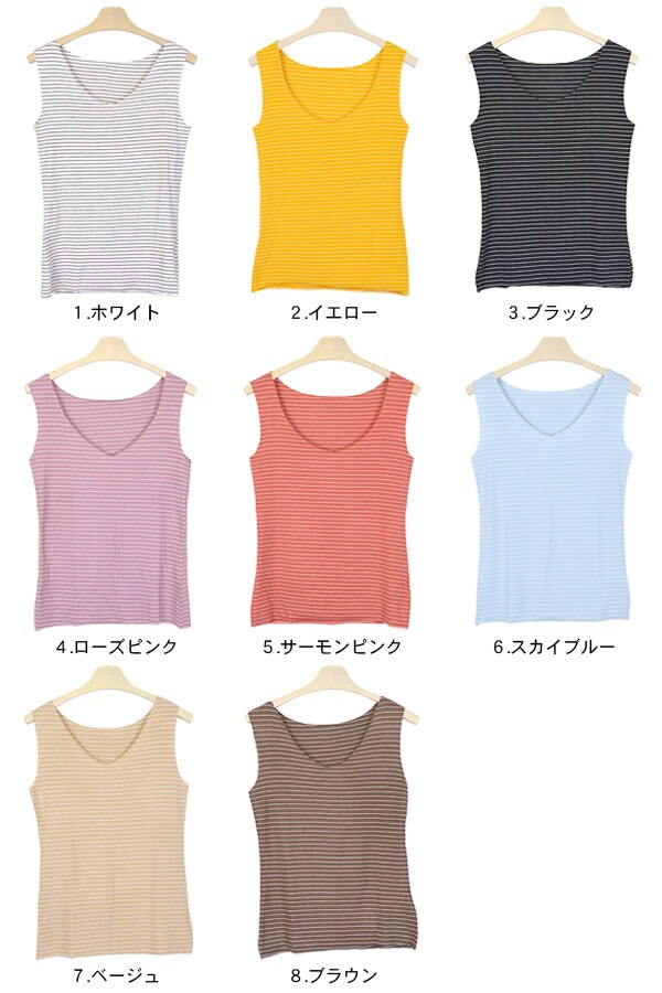 - リブ地パステルカラー細ボーダーシンプルタンクトップ レディーストップス