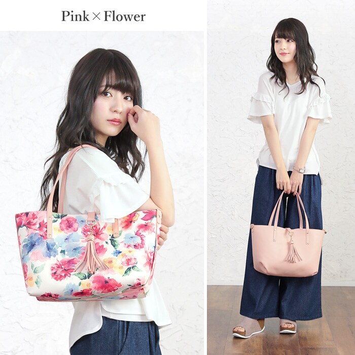 オンもオフもこれ1つ!2WAYトートバッグ『Reina』レイナ | シンプルな無地とコーデのアクセントになる総柄のリバーシブルデザイン♪