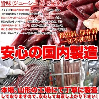 ・原材料/材質/素材:鶏肉、豚脂肪、豚肉、粉末水あめ、香辛料、食塩、ポークエキス、調味料(アミノ酸等)、リン酸塩(Na)、酸化防止剤(ビタミンC)、発色剤(硝酸K、亜硝酸Na)、(原材料の一部に牛肉、大豆を含む)