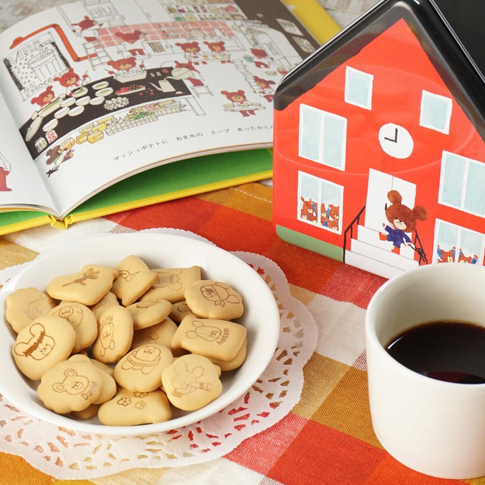 【2缶】くまのがっこう 学校缶 スイートポテトビスケット | 三角屋根付きの学校をデザインした缶にスイートポテト味のビスケットを詰めました