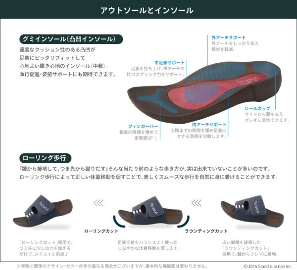 ■インソールにはリゲッタ最大の特長である「グミインソール」を採用。 計算された凹凸が足裏にピッタリフィットするグミインソール。 一日中履いていても疲れにくく、快適に過ごすことが出来ます。