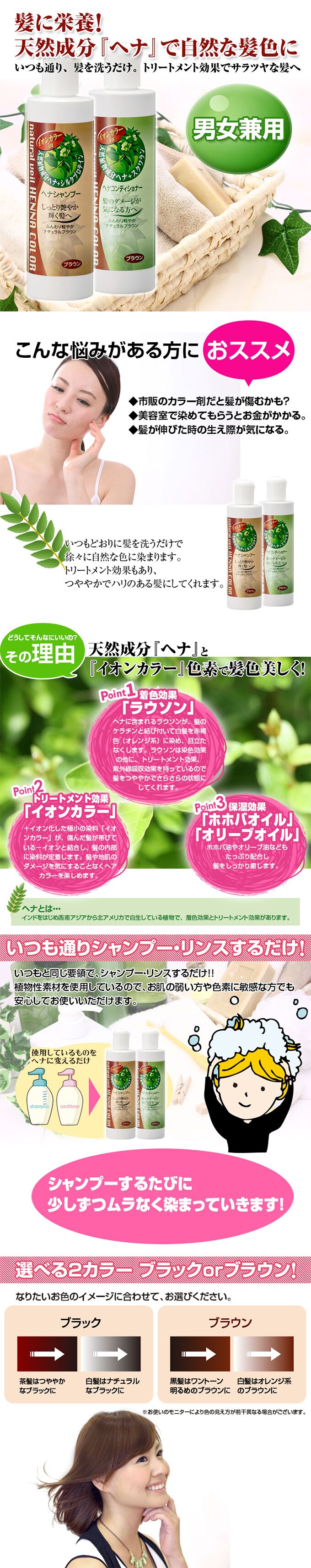 [ブラウン]ヘナシャンプー(300ml)&コンディショナー(300ml)6本セット | いつもどおりに髪を洗うだけで髪色が少しずつ染まる!天然成分「ヘナ」配合シャンプー
