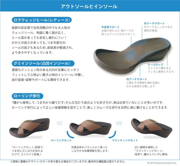 中敷きにはグミインソールを採用しており、凸凹した形が足裏にピッタリフィットし、血行促進効果にも期待ができる仕様となっております。