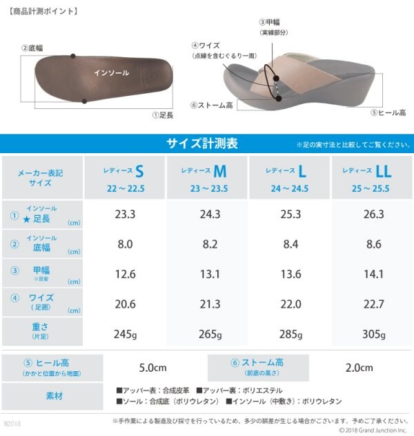 サイズ計測表の数値と、足の実寸法を比較してご確認下さい。