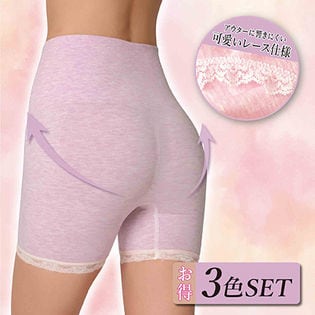 3色組【3L-4L/ピンク・ラベンダー・ミントグリーン】シェイプアップラインレスハイウエストガードル | 可愛いレースのラインレスガードル!