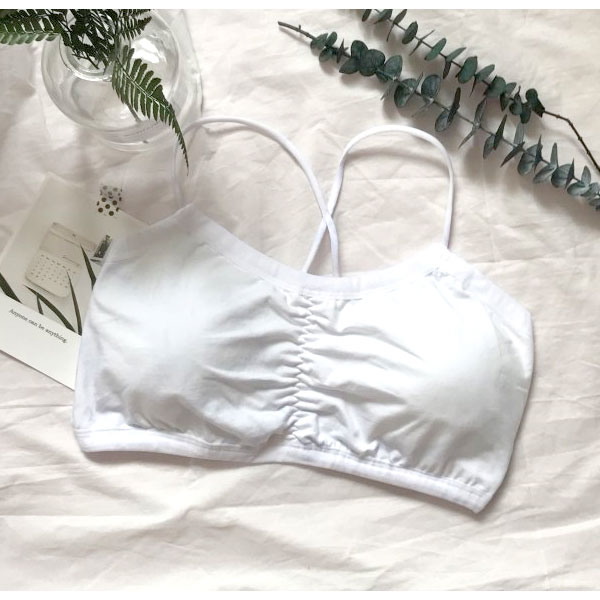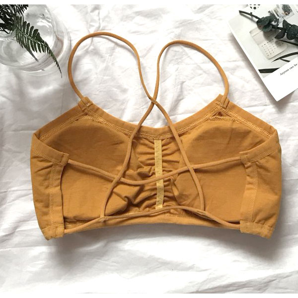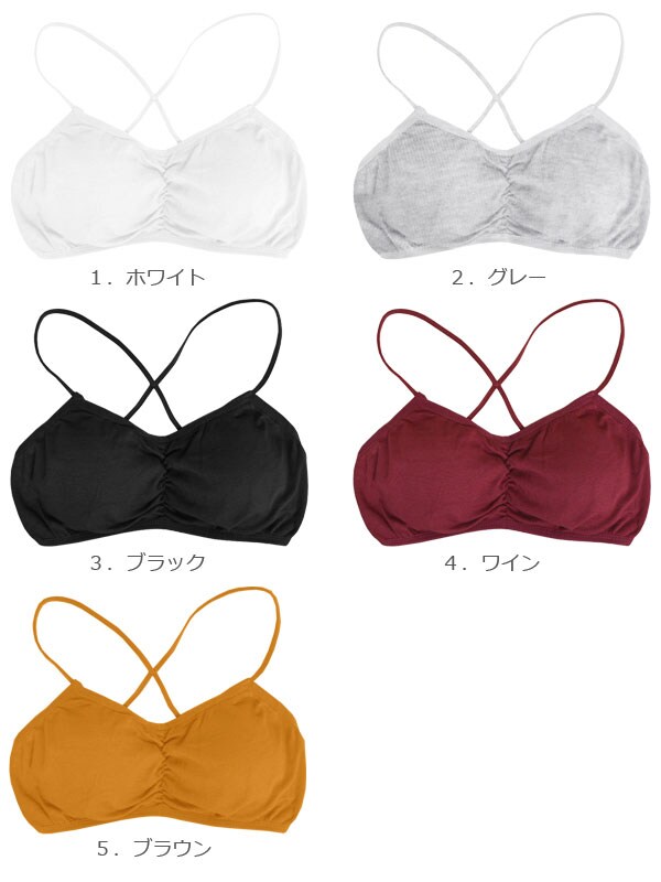 カップ付きノンワイヤーバックデザインブラトップギャザー | バッククロスのセクシーなブラトップ!