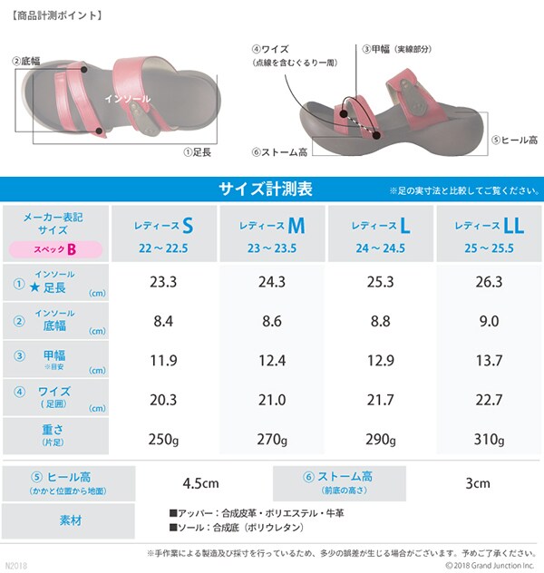 サイズ計測表の数値と、足の実寸法を比較してご確認下さい。