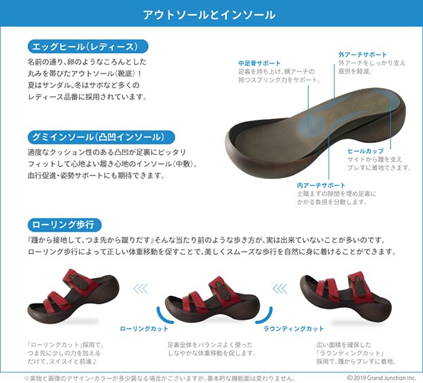 ■インソールには「グミインソール」を採用。 凸凹した構造のグミインソールは、血行促進をサポートし、 歩き疲れや冷え・むくみ防止に役立ちます。 正しい歩き方を促し、姿勢サポート効果にも期待できる構造となっております。