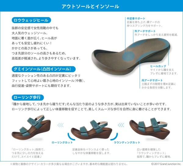 ■インソールには「グミインソール」を採用。凸凹した構造のグミインソールは、血行促進をサポートし、歩き疲れや冷え・むくみ防止に役立ちます。 正しい歩き方を促し、姿勢サポート効果にも期待できる構造となっております。