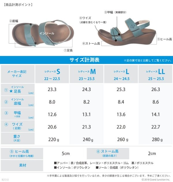 サイズ計測表の数値と、足の実寸法を比較してご確認下さい。