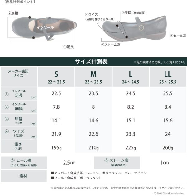 サイズ計測表の数値と、足の実寸法を比較してご確認下さい。