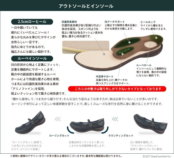 ■アウトソールにはぺたんこな「ローヒール」を採用。 厚さ2.5cmのほぼフラットなソールを採用した楽ちんな一足に仕上げました。 ただのペタンコパンプスとは違い、底の厚みで地面からの衝撃を吸収! 足に負担がかかりにくいリゲッタならではの構造となっております。 ヒールが苦手な方にも自信をもってオススメできる一足です!