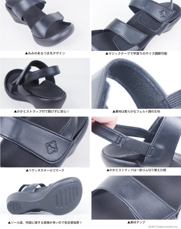 ベルクロ ストラップサンダル オフィス 黒 リゲッタ カヌー CJLW5528 | オフィス、エステサンダルとしても人気!安定の5cmウェッジソール