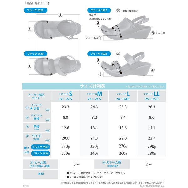 サイズ計測表の数値と、足の実寸法を比較してご確認下さい。