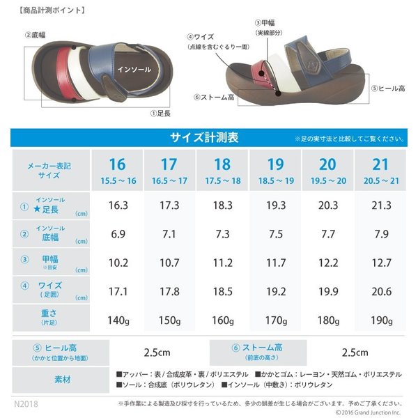サイズ計測表の数値と、足の実寸法を比較してご確認下さい。