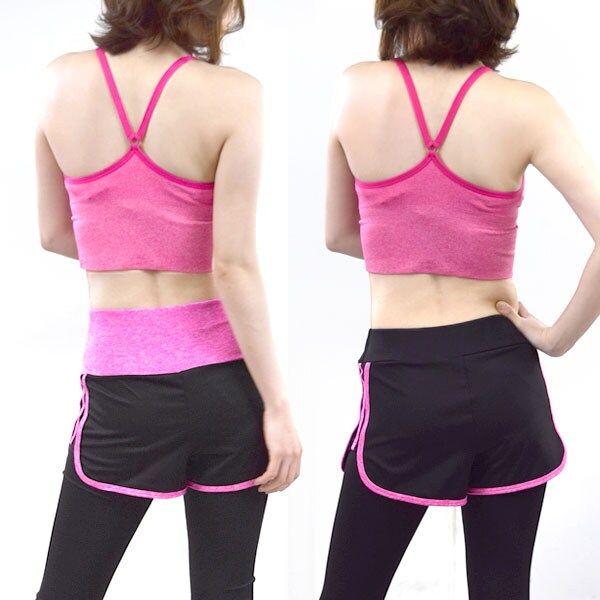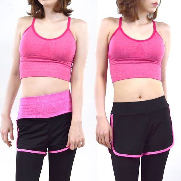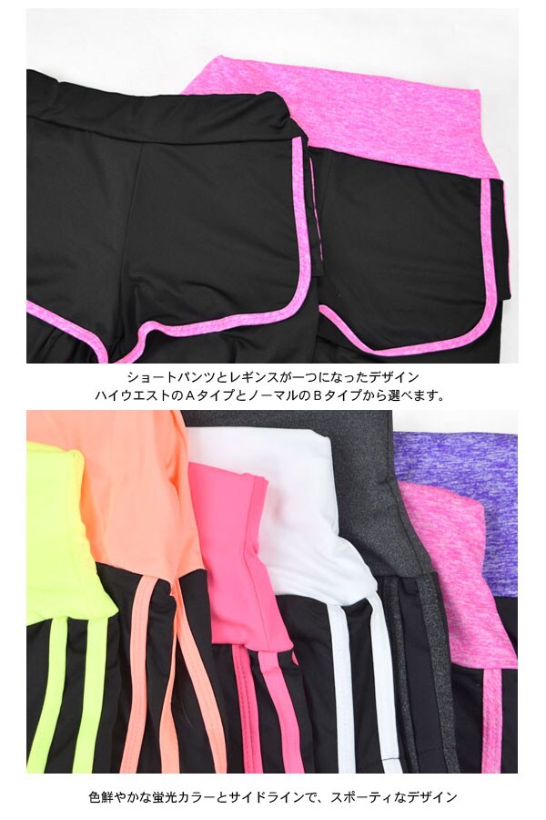 ショートパンツ一体型ハイウエストレギンスパンツ[Lサイズ] レディーススポーツウェア | ランニングやヨガなど運動に最適なレギンスパンツ♪
