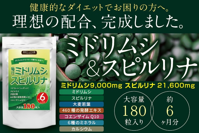 - 健康たっぷり本舗 毎日ミドリムシとスピルリナ 大容量180粒入り/約6ヶ月分