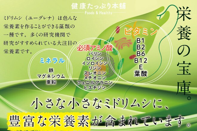小さな小さなミドリムシに、これだけの栄養素がたっぷりと含まれています。