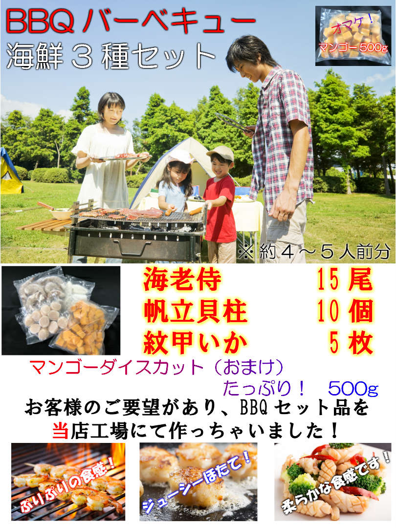 海鮮BBQバーベキュー3種とデザート(オマケ) | 4-5人前バーベキューセット