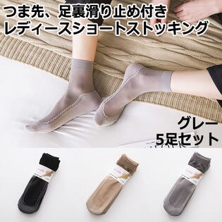 - 【グレー×5足セット】縦ライン入りおしゃれなレディースショートストッキング