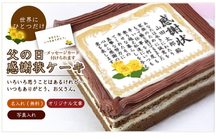 父の日 感謝状ケーキ (テンプレート) / 5号サイズ キャラメルクリーム味 | 驚きのデコレーションケーキ 本物そっくりの感謝状でお父さんを表彰しよう