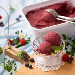 アイス製造機「パステライザー」で低温加熱殺菌し、ひとつひとつ手作業で丹念に果実を配合。アイス(ジェラート)とフルーツの相性抜群!!ブルーベリー・レッドカラント・ラズベリー・カシス・ブラックベリー等、ありとあらゆるベリーを贅沢にふんだんに使用した、こだわりの5種類ベリーの甘酸っぱい味と香りがジェラートと一緒に口の中いっぱいに広がります。?